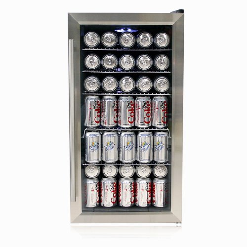 Whynter BR-125SD Beverage Refrigerator, Stainless SteelWe run a small cafe and were looking for a a couple of display fridges that we could use to retail sodas to go. This looked great in the pictures and turned out even nicer than expected. The description says 117 cans but we actually managed to squeeze in 118 cans into the fridge through a little clever positioning.It took awhile to get cool, but got down to a very nice frosty level after running it overnight. The more you put in the longer it takes obviously. I noticed one of the units not getting as cold as our other units and realized that we placed it too close to the wall blocking the back ventilation. Moved it out a few inches and it worked as hoped. Another thing we realized about glass doors is that any direct sunlight will keep trap heat in the unit. That's the one drawback, but they sure look good. Just keep it out of sunlight. It's also surprisingly quiet, not silent, but very quiet for a compressor fridge.The shelves are designed to work with cans which is a big plus as most of these glass refrigerators are designed for wine. This is a big difference. You cannot store cans with frames designed for wine bottles. I believe optional wine racks can be purchased for this unit.The unit comes with a nice stainless steel doorframe and handle and looks like it costs a lot more than it does. In fact, it is less than a third of what we paid for our older beverage display counter of the same size. Decent price, excellent product that works as hoped.