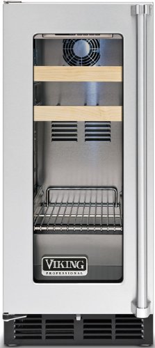Viking Stainless Steel Built In Beverage Center VBCI1150GLSS. Electronic controls with digital temperature readout. Temperature can be adjusted from 36* to 48*F. Factory set at 42*F. Can be displayed in either Fahrenheit or Celsius. 3.0 cubic feet of storage. One full extension adjustable wire shelf. 75-lb. capacity. Accommodates 21 12-oz. cans. Removable and adjustable. Two full extension adjustable wine shelves. Accommodates 8 bottles. Shelves can be removed and adjusted to store large bottles. Dual pane and argon filled Low 'E' energy efficient glass doors. LED display lighting. Forced air cooling system. Powerful 700 BTU compressor. Stainless steel interior. Stainless steel exterior cabinet. Tru-Flush design allows beverage center to fit flush into 24 deep installation cutout. Undercounter or freestanding installation. Self-closing door. Super quiet 32 - 39 db sound rating. Black kickplate. Adjustable leveling legs. Three-year full - covers complete unit. Six-year full - sealed system. Lifetime limited - stainless steel exterior. 12-year limited - sealed system. Ninety-day limited - cosmetic parts such as glass, painted items, and decorative items. Warranty valid on Viking products shipped within the United States and Canada. Electrical Requirements: 115V/60 Hz; 15 Amp Dedicated Circuit; 5 Ft. Power Cord Attached To Product. Maximum Amp Usage: 3.0 Amps. Maximum Storage Capacity: 3.0 Cu. Ft. Wine Bottles Capacity: 8. 12 Oz. Cans Capacity: 21. Approx. Shipping Weight: 175 Lbs. Overall Width: 14 7/8. Overall Depth: 26 9/16. Overall Height: 34 1/4. Cutout Width: 15. Cutout Depth: 24. Cutout Height: 34 1/2 - 35 1/2. Viking introduced professional cooking to the home when their first range shipped in 1987. Now that same exceptional performance extends into every corner of the kitchen - even the backyard. Refrigerators. Wine Cellars. Dishwashers. Grills. Cookware. Cutlery. Small appliances. It's enough to turn any cook into a chef. When people think of Viking, the bold