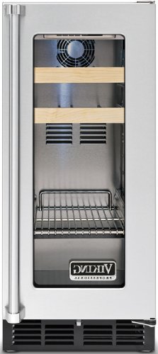 Viking Stainless Steel Built In Beverage Center VBCI1150GRSS. Electronic controls with digital temperature readout. Temperature can be adjusted from 36* to 48*F. Factory set at 42*F. Can be displayed in either Fahrenheit or Celsius. 3.0 cubic feet of storage. One full extension adjustable wire shelf. 75-lb. capacity. Accommodates 21 12-oz. cans. Removable and adjustable. Two full extension adjustable wine shelves. Accommodates 8 bottles. Shelves can be removed and adjusted to store large bottles. Dual pane and argon filled Low 'E' energy efficient glass doors. LED display lighting. Forced air cooling system. Powerful 700 BTU compressor. Stainless steel interior. Stainless steel exterior cabinet. Tru-Flush design allows beverage center to fit flush into 24 deep installation cutout. Undercounter or freestanding installation. Self-closing door. Super quiet 32 - 39 db sound rating. Black kickplate. Adjustable leveling legs. Three-year full - covers complete unit. Six-year full - sealed system. Lifetime limited - stainless steel exterior. 12-year limited - sealed system. Ninety-day limited - cosmetic parts such as glass, painted items, and decorative items. Warranty valid on Viking products shipped within the United States and Canada. Electrical Requirements: 115V/60 Hz; 15 Amp Dedicated Circuit; 5 Ft. Power Cord Attached To Product. Maximum Amp Usage: 3.0 Amps. Maximum Storage Capacity: 3.0 Cu. Ft. Wine Bottles Capacity: 8. 12 Oz. Cans Capacity: 21. Approx. Shipping Weight: 175 Lbs. Overall Width: 14 7/8. Overall Depth: 26 9/16. Overall Height: 34 1/4. Cutout Width: 15. Cutout Depth: 24. Cutout Height: 34 1/2 - 35 1/2. Viking introduced professional cooking to the home when their first range shipped in 1987. Now that same exceptional performance extends into every corner of the kitchen - even the backyard. Refrigerators. Wine Cellars. Dishwashers. Grills. Cookware. Cutlery. Small appliances. It's enough to turn any cook into a chef. When people think of Viking, the bold