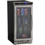AVANTI BUILT-IN STAINLESS STEEL FRONT DELUXE BEVERAGE CENTER - BCA1501SS. 3.0 CU. FT. CAPACITY. REVERSIBLE DOUBLE-PANE TEMPERED GLASS DOOR. REMOVABLE GLASS SHELVES. LED INTERIOR DISPLAY LIGHTING. ADA COMPLIANT. AUTO DEFROST. BLACK CABINET WRAP. STAINLESS STEEL FINISH