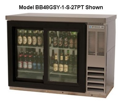 - Beverage Air BB48GY-1-S-27 Backbar Cabinet w/ 2-Doors, (2)1/2-Keg, 2-in Stainless Top, 48 x 36-in H