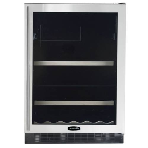 One of Marvel's most popular and versatile performers has just become a lot more stylish. The 6BARM provides the best of both worlds in one beautiful model, featuring distinct temperature zones for both wine and beverage storage.Proudly Made In USAADA Compliant: No Bottle Capacity: 14 Cabinet Color: Black Canned Beverage Capacity (Oz.): 133 12 Coated Wire Shelves: 1 with Dual Flip-Up Sections Defrost: Full Auto Defrost Type: Automatic Depth Including Handle: 26-3 8 Depth NOT Including Door: 22 Depth NOT Including Handle: 24-1 4 Display: Amber LED Door: Argon-Filled, Dual-Paned, Tinted UV-Resistant Glass Door Color: Black Door Swing: Reversible Door Swing at 90 : 25-1 2 Electrical Requirements (Volts, Amps): 120, 15 Energy Star Compliant: No Exclusive MicroSentry System: Yes Height at 0" Leg Adjustment: 34-1 4 Height at Full Leg Adjustment: 35 Height without Legs Installed: 34 Hinge Side: Left Installation: Built-In or Freestanding Interior Lighting: Yes Recommended Opening Depth: 24 Recommended Opening Height: 34-1 2 Recommended Opening Width: 24 Shelf-Front: Clear, Solid White Maple Trims Size: Compact Temperature Range: 40 and 65 F Temperature Zones: 2 Tempered Glass Shelves: 2 Removable Toe Kick Height: 3 Touch Controls: Yes Type: Built-In Width: 23-7 8 Wine Cradle: 1 Stationary Wine Racks: 1 Extendable{Exclusive Marvel Features and Benefits Enhanced microprocessor technology provides superior temperature control Ultra-efficient compressor delivers fast cool-down, superior temperature control and longevity Powder coat painted steel cabinets and doors provide an attractive, low maintenance exterior High efficiency fan motor lasts virtually a lifetime Commercial condenser design delivers more air flow {Other Features Self closing door Two temperature zones for wine storage and beverage refrigeration Stores up to 14 wine bottles, including magnums, and 103 twelve-ounce canned beverages (max 133 cans if double stacked on right) Discreetly located touch controls have