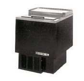 Bottle Cooler, flat top, self-contained refrigeration system, shallow well design, 1 sliding door, black vinyl exterior, galvanized interior, s/s top.