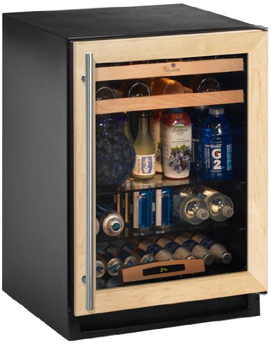 Refreshing in style and convenience, this 2175BEVC Uline Beverage center offers you an integrated custom look. Whether you want to reach for a soda in the solarium, a glass of wine in the great room or a water bottle near a whirlpool, U-Line has what you're thirsting for. Features Touch Glass Control featuring easy view command center Lighted black interior Refrigeration capacity of 5.5 cubic feet Wine bottle capacity up to 16 bottles (.75L) Two 6 mm tempered glass shelves, holds up to 129, 12 oz. cans Single zone Convection Cooling System Temperature range: 34 - 45F* LowE coated, Argon gas filled thermopane glass door Two solid beech wood trimmed, full extension, vinyl coated wine racks Standard commercial stainless steel handle. ENERGY STAR and CEE Tier 1 rated This unit is also deemed suitable for commercial use by Underwriters Laboratory (UL) Approximate Dimensions (Inches) Height: 34 1/8 Width: 23 15/16 Depth: 23 1/4 Consult product installation guide for exact dimensions.
