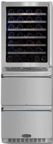 Marvel Stainless Steel Built In Beverage Center MPRO66WDMBSGLL. Blue LED Interior Display Lighting and Temperature Controls. Six Glide-out Wine Racks. Stores 54 Bottles. Accurate Temperature Control Between 40 and 65 *F. Close Door Assist Hinging System. Standard Door Lock. Bright White LED Interior Light. Accurate Temperature Control Between 34 and 42 *F. Extra-deep Lower Drawer: Stores most 2-liter and wine bottles standing up. Self-Closing Soft-Close Drawer Glides. Standard Door Lock. Three Year Warranty. Bottle Capacity: 54. Can Capacity: 164. Refrigerator Capacity: 5.8 cu. ft. Door Lock: Yes. Leveling Legs: Yes. Interior Lighting: Blue LED/White LED. Cooling Technology: Active/Dynamic. Sabbath Mode: Drawers Only. Width: 23 7/8. Depth: 24 5/16. Height: 67 1/2. The perfect choice for professional-style kitchens. Quality... you know it when you see it. Clean lines. Elegant styling. Attention to detail and smart design. It just feels right. This new line of premium, professional-style products is the result of 120 years of leadership in the refrigeration market. You'll see it in accents like the striking stainless steel drawer fronts. You'll feel it in the flawless fit and finish and the smooth, solid mechanics of Marvel's drawer glides and door hinge systems. And you'll experience it with advanced cooling systems and controls that keep your wines, beverages, and food at just the right temperature. Marvel's household products are manufactured to the same stringent standards as those they design for their medical, scientific, and industrial customers. You can be confident that your Marvel is built for long-lasting performance. Stacking Combination Units Make maximum use of your entertainment space with these beautiful stacked units. Combine wine cellars and refrigerators to serve your wine, beverages, and food in one convenient and attractive location. Think of it as having all the Marvel Professional style and performance features times two! Marvel Professional win